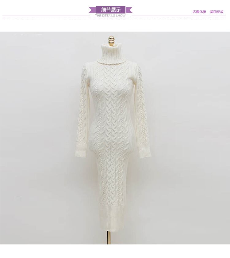 冬の女性シースニット暖かいドレスタートルネック麻の花ボディコン厚いドレススプリットペンシルドレス ウィンター 冬物 フラワーデザイン