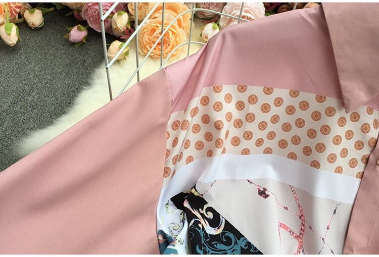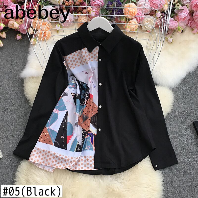 2021年春秋ヴィンテージターンダウンカラー長袖シャツ不規則なデザインシングルブレストプリントルーズシャツトップ ロング スプリング 春物 オータム 秋物 ビンテージ