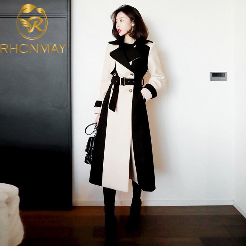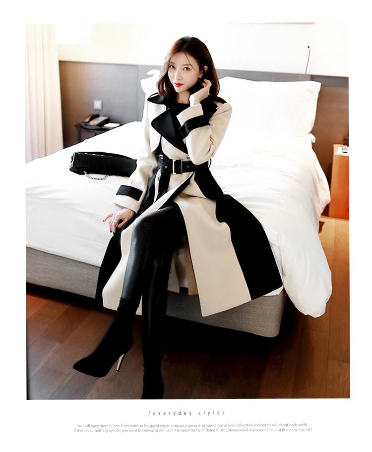 秋冬女性ツイード厚手の暖かいオーバーコートウールダブルブレストパッチワークロングサッシトレンチウールコート オータム 秋物 ウィンター 冬物