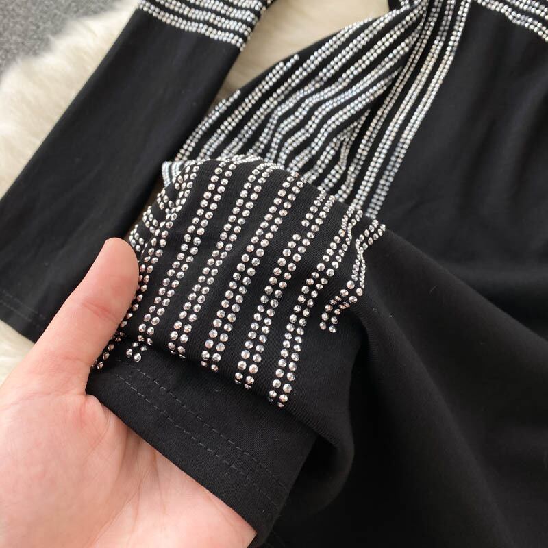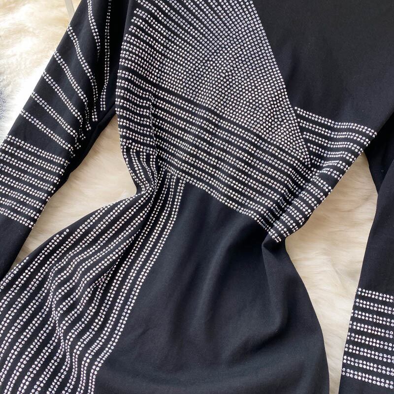女性ダイヤモンドドレス長袖Oネックスリムドレス秋のセクシーなボディコンストリートウェアショートドレス ロング オータム 秋物