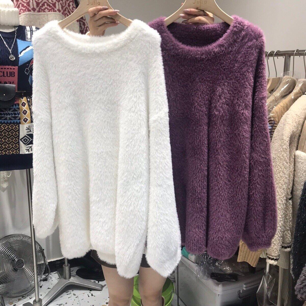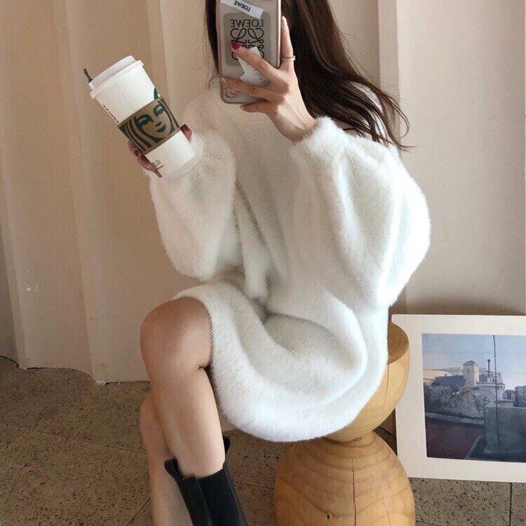 冬のセーターの女性2021ニットイミテーションミンクフリースセータードレスルーズボトムスソリッドセータートップス ウィンター 冬物 ソリッドカラー