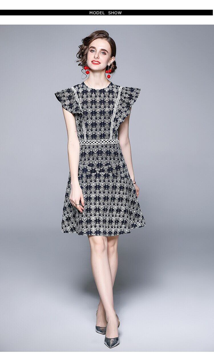 気質かぎ針編みのドレス女性夏のフライングスリーブレースアップラインドレス女性の服Vestidosローブ サマー 夏物 Aライン
