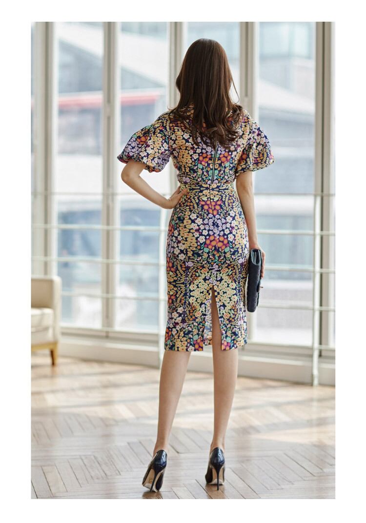 夏の女性のスカートセット プリントランタンスリーブ シャツトップス+ウエストペンシルスカート スーツ サマー 夏物