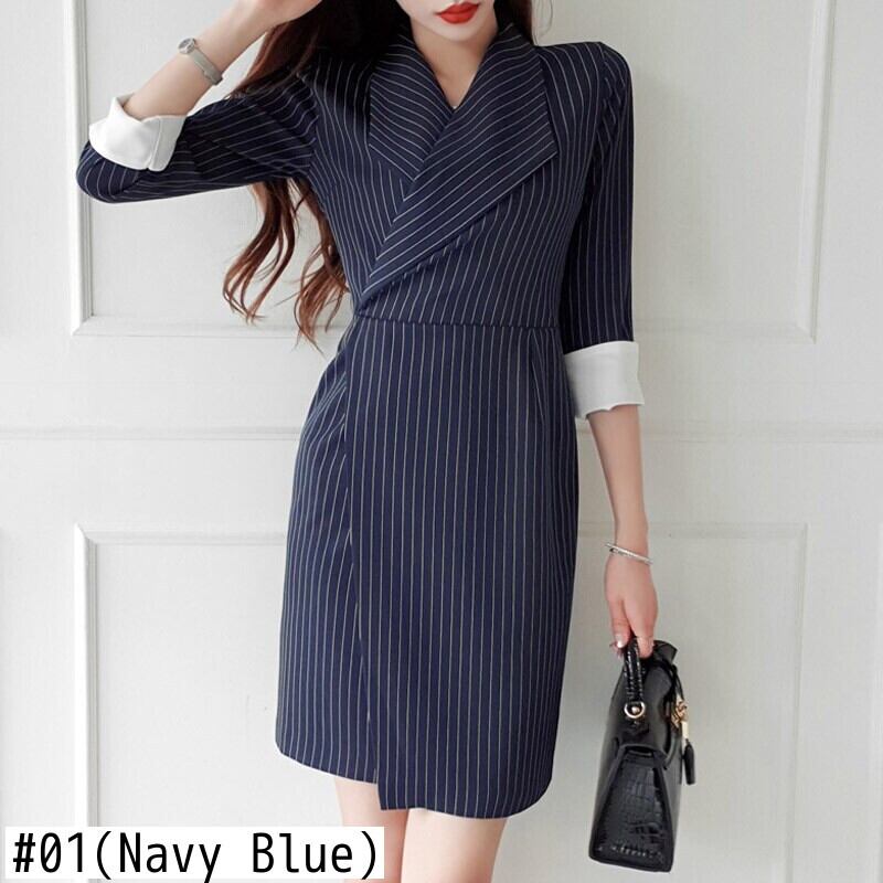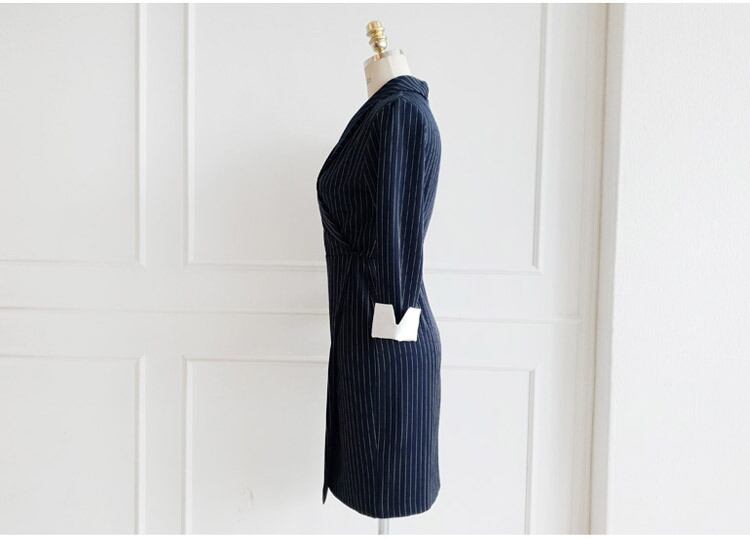 女性 セクシー サッシペンシルブレザードレス 3/4 スリーブ ノッチネック オフィスレディー ストライプドレス ヴィンテージ サマー 夏物 ビンテージ 会社 学校 通勤や通学にも