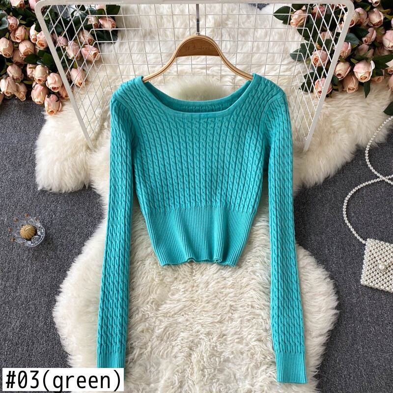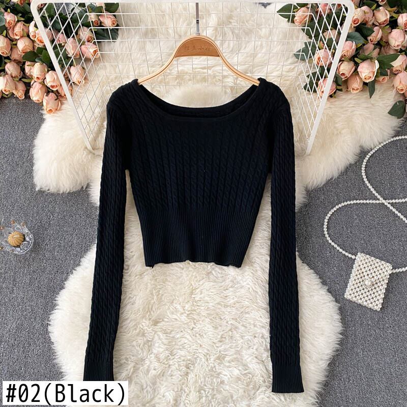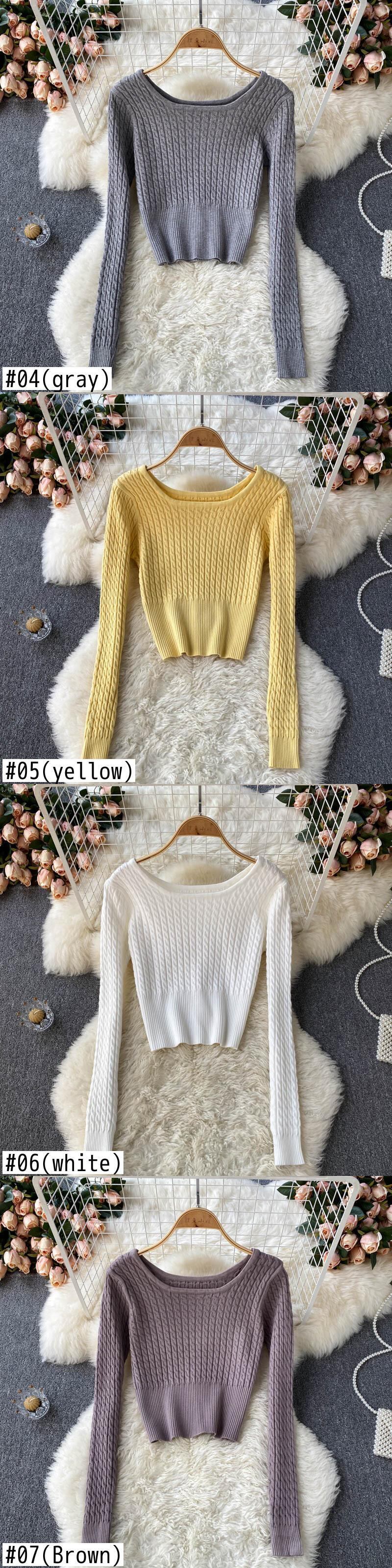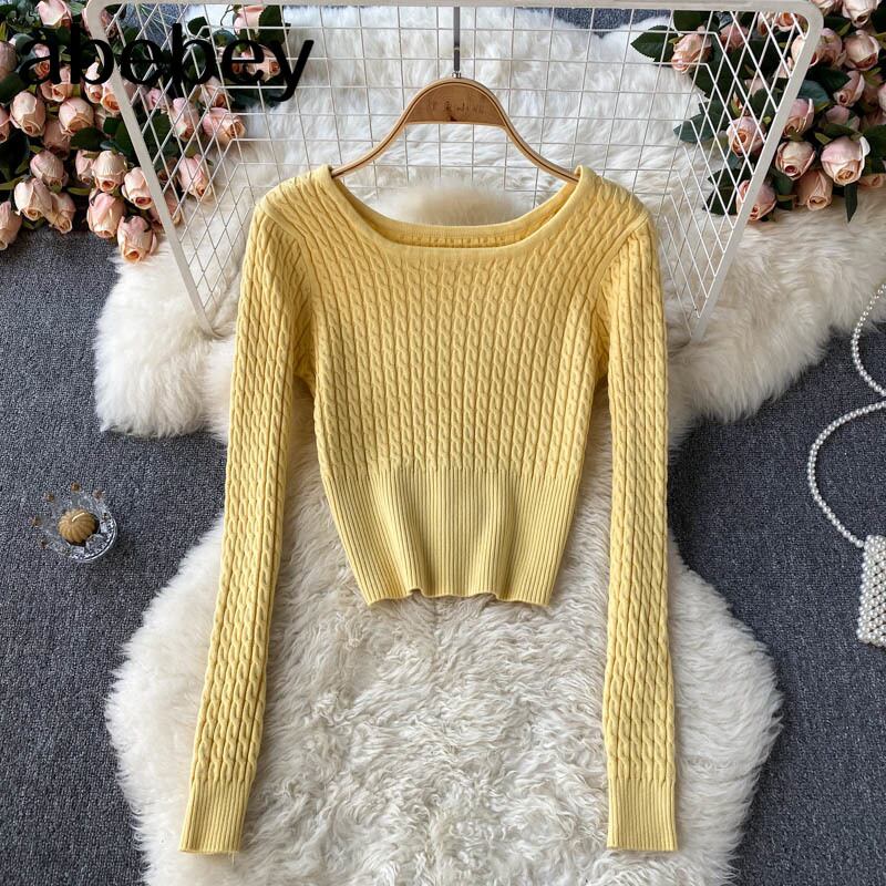 女性ニットセーター長袖伸縮性スリムソリッドニットトップス2021秋のストリートウェアショートプルオーバー ロング エラスティック オータム 秋物 ソリッドカラー