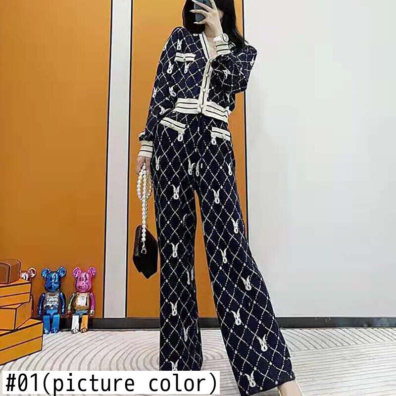 ニットツーピースセット女性2021年秋冬セット長袖セーターカーディガン+ワイドレッグロングパンツスーツ オータム 秋物 ウィンター 冬物 ワイドパンツ