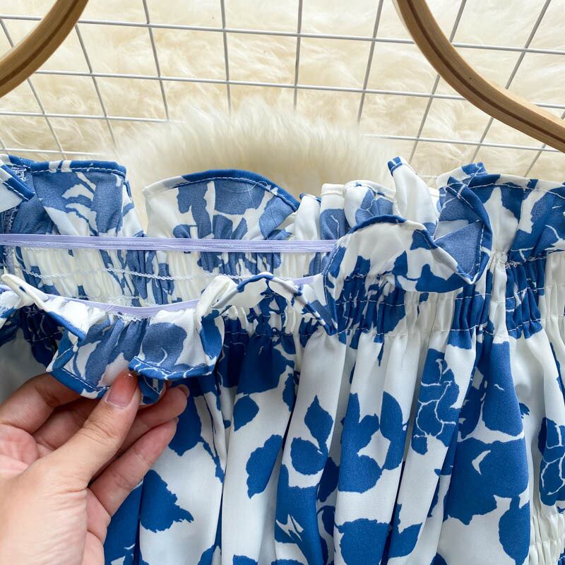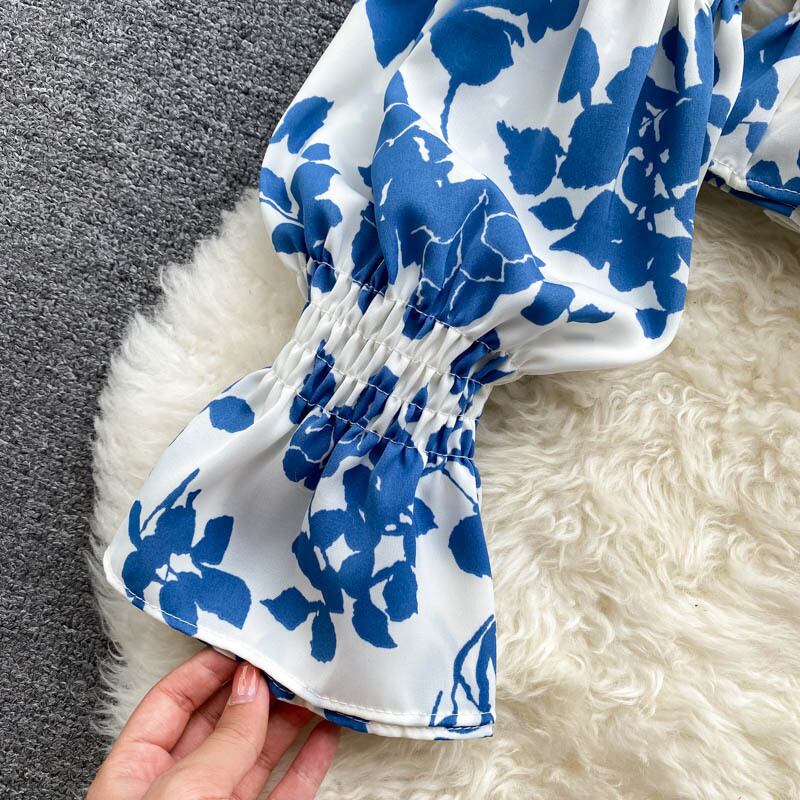 女性フレンチフローラルブラウス長袖スラッシュネックトップス秋のボヘミアンプリントオフショルダーバケーションショートブラウス ロング オータム 秋物 花柄