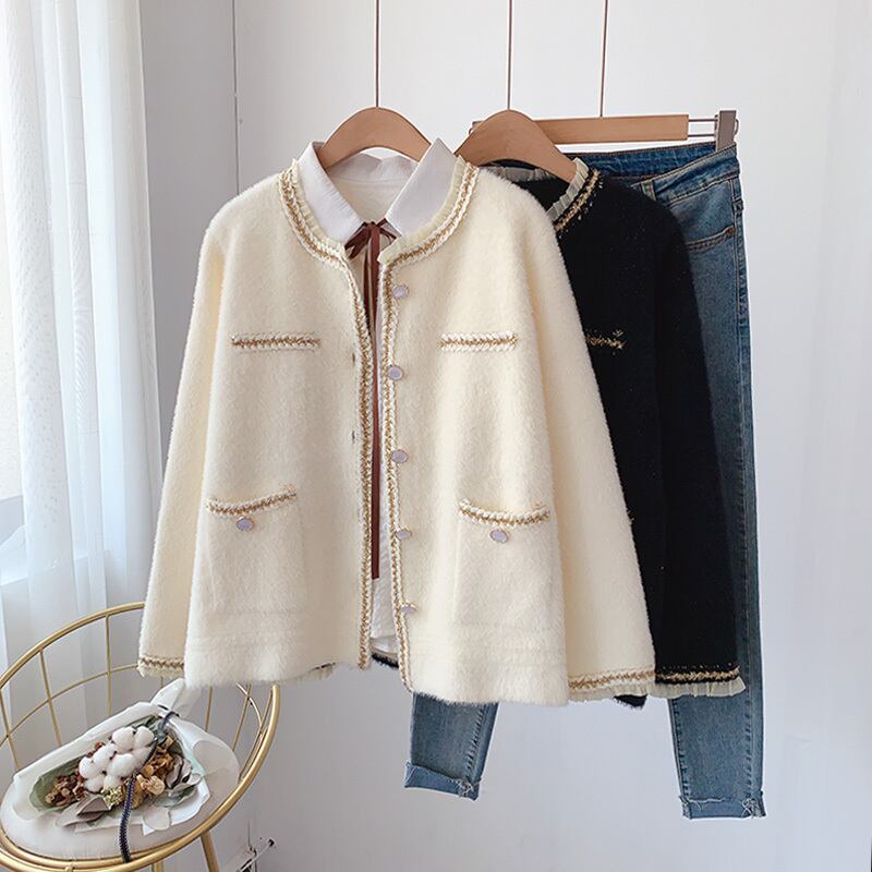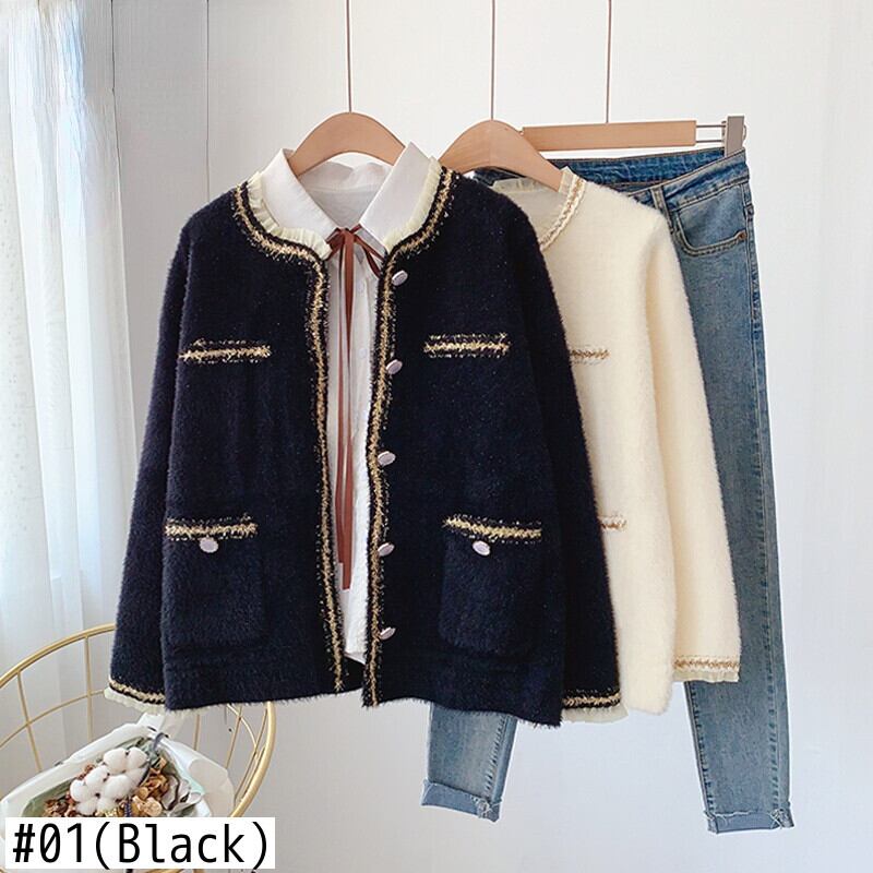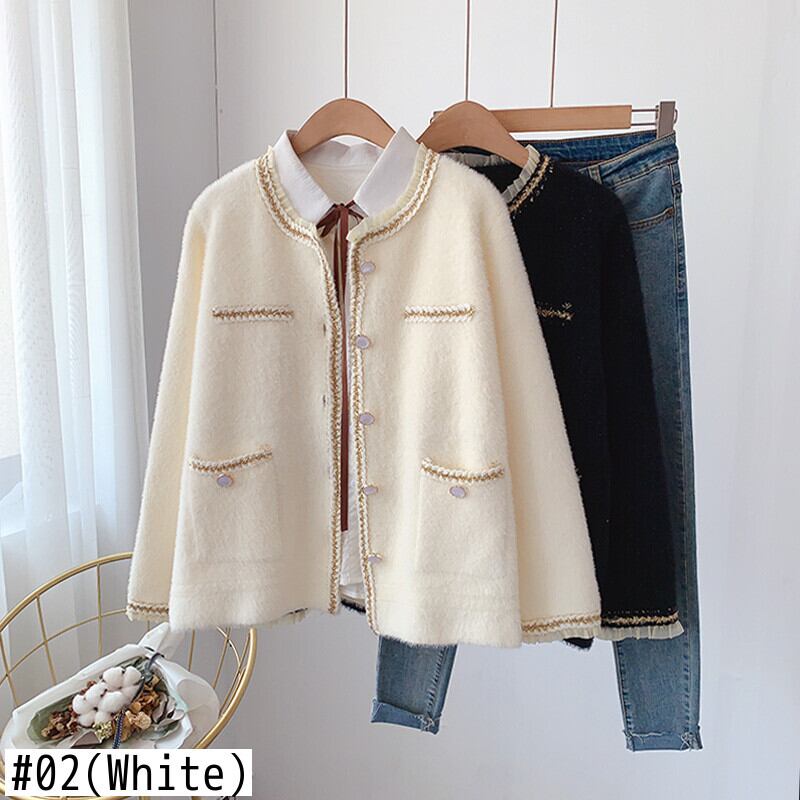 冬のセーター ニットカーディガン黒と白のマルカーディガンニットvネックセーター ホワイト ブラック ウィンター 冬物