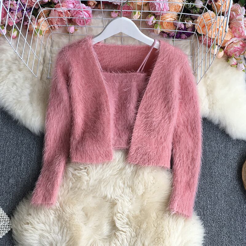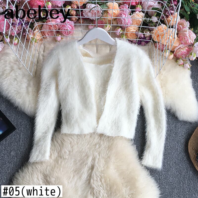 2021年春秋長袖ボタンレスニットカーディガンショート無地ふわふわセータートップキャミソールショート ロング スプリング 春物 オータム 秋物 ソリッドカラー