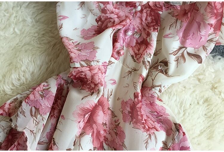 2021年夏ヴィンテージスラッシュネック半袖ドレスフリルパッチワークハイウエストプリーツプリントミドル丈Aラインドレス ハイウェスト ショート ハーフスリーブ ラッフル サマー 夏物 ビンテージ
