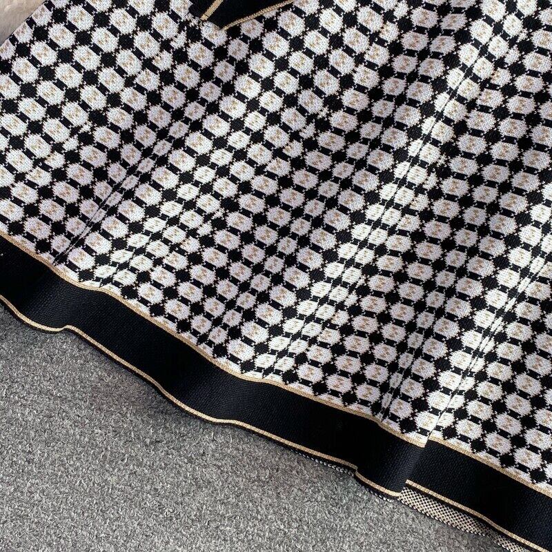 女性秋冬レトロチェック柄ニットセット長袖シングルブレストカーディガン+ウエストAラインスカートツーピースセット ロング オータム 秋物 ウィンター 冬物