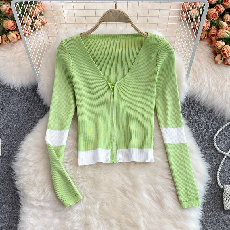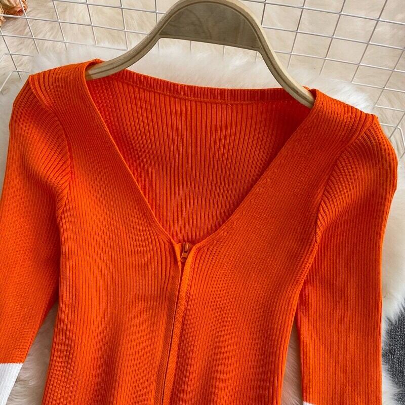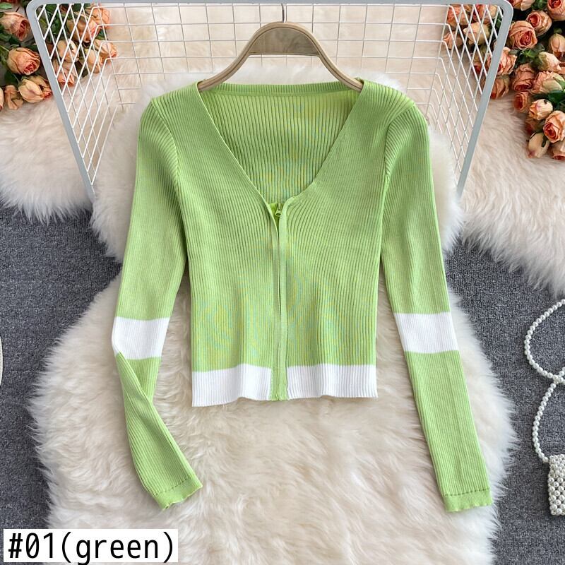 女性ニットカーディガン長袖Vネックスリムセーター2021秋ストリートウェアジッパーアウター ロング オータム 秋物