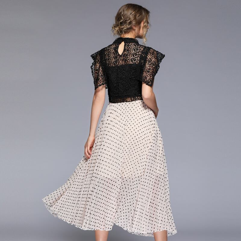 セクシーなサマーレースパーティードレス女性Oネックブラック水玉ヴィンテージドレスプラスサイズスイングピンアップロカビリーVestido 大きめサイズ 夏物 ビンテージ