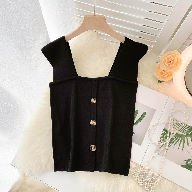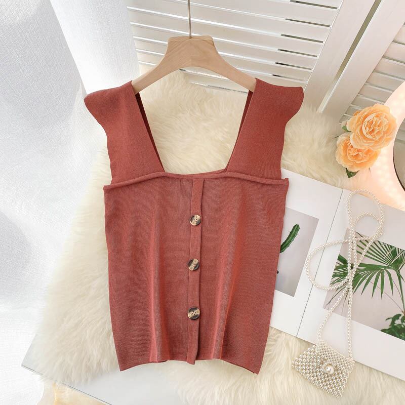 女性のニットストラップトップスセクシーなノースリーブ弾性スリムY2Kトップスサマーオフショルダーストリートウェアショートキャミソール エラスティック 伸縮 夏物