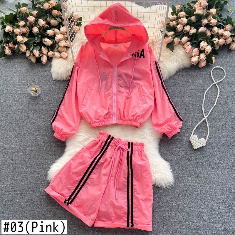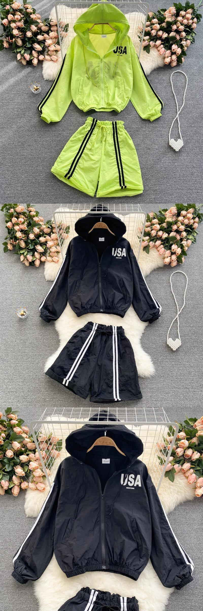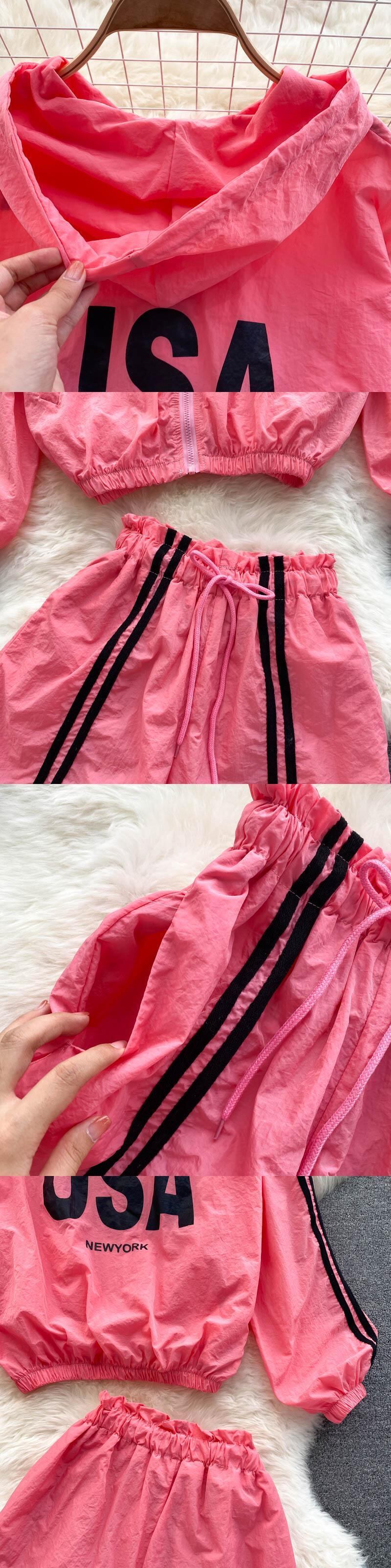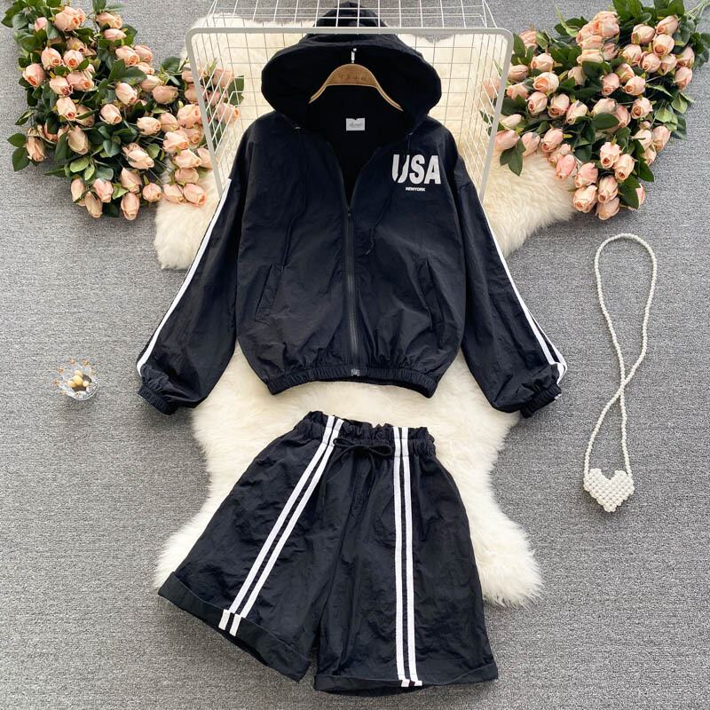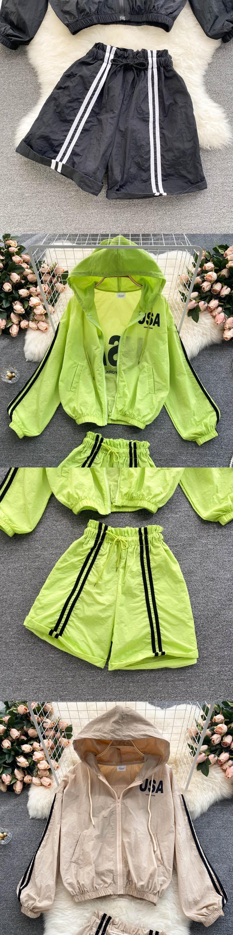 女性秋スポーツセット長袖ルーズジッパーフード付きアウター+ウエストワイドレッグショーツツーピーススーツ ロング オータム 秋物 ブルマー ワイドパンツ