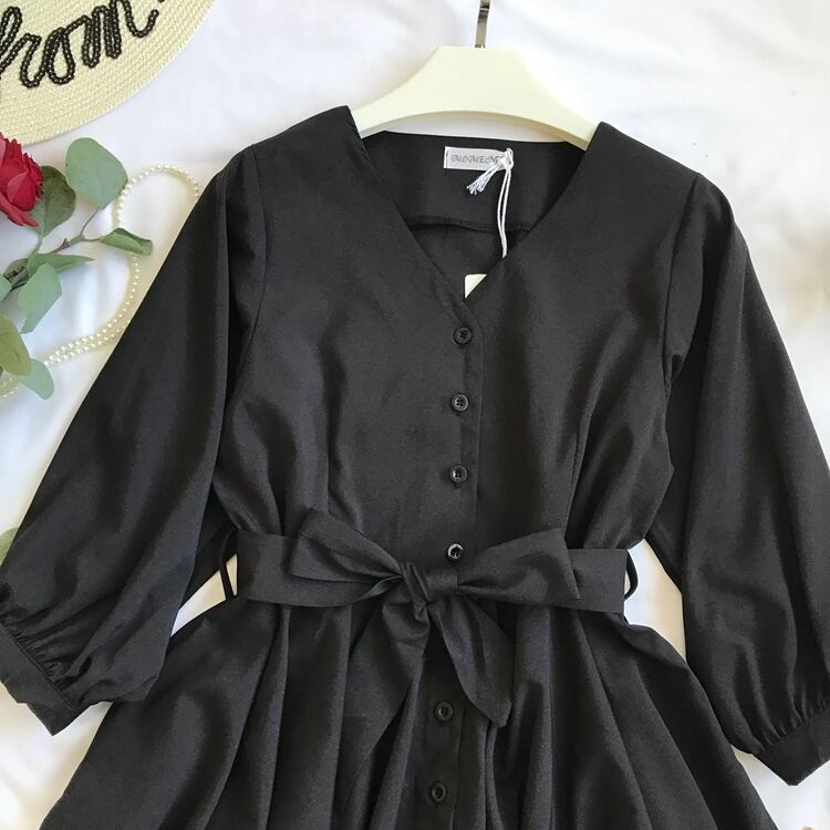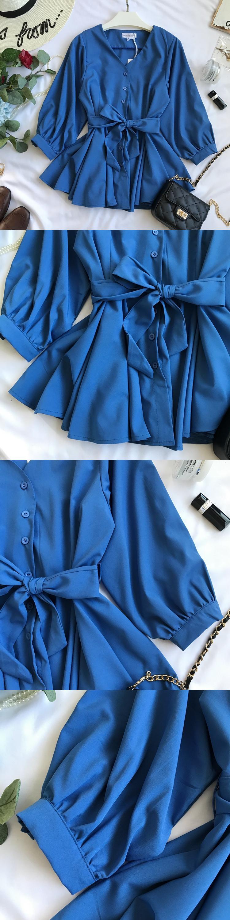 サッシュ Vネック プリーツレディースシャツ 春秋 シンプルスウィート トップ モディスソリッド シングルブレスト ブラウス 69659 大人ガーリー キュート カジュアル スプリング 春物 オータム 秋物 ソリッドカラー