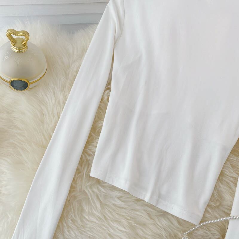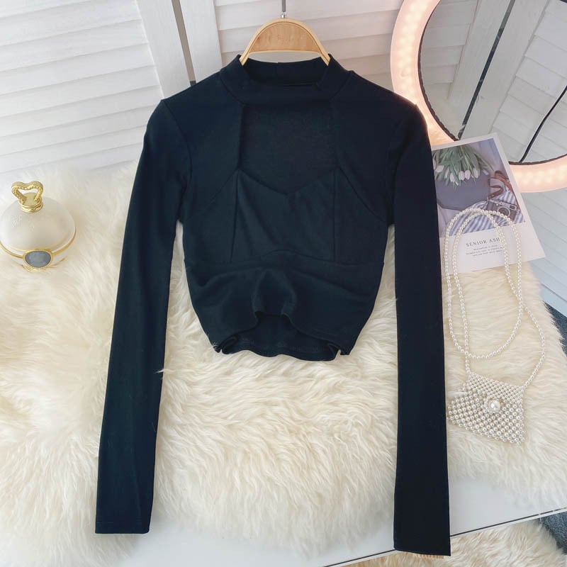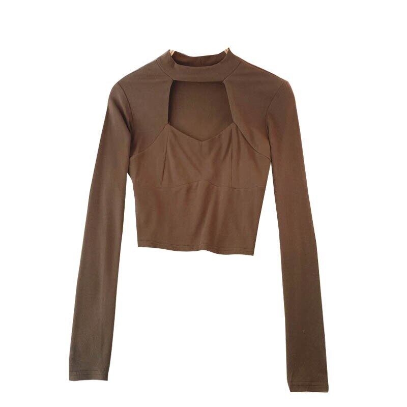 女性ブラウス長袖スタンド襟中空トップス2021秋セクシースリムストリートウェアショートブラウス ロング オータム 秋物