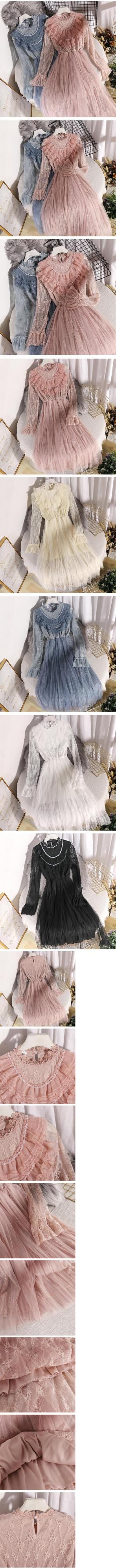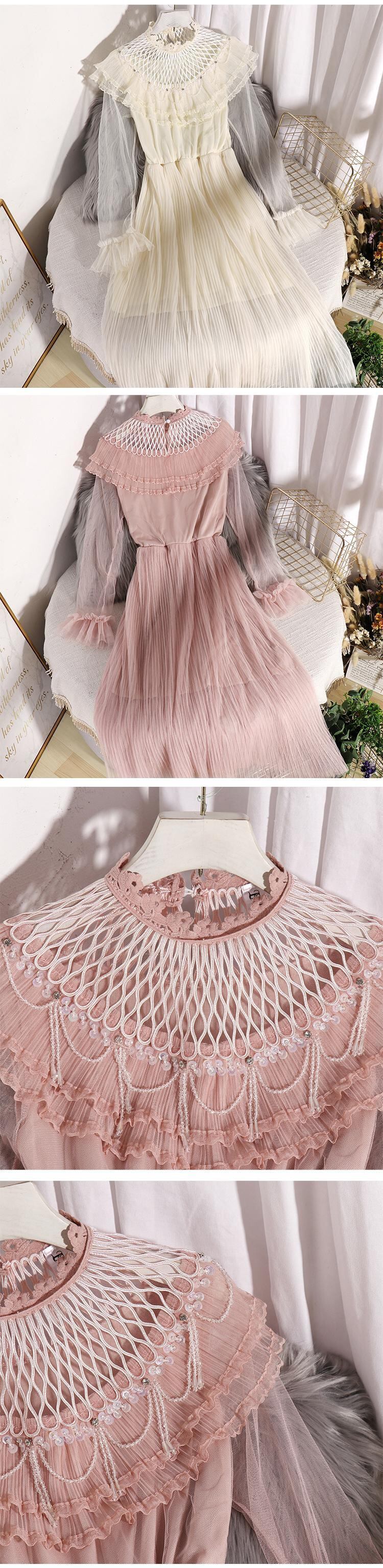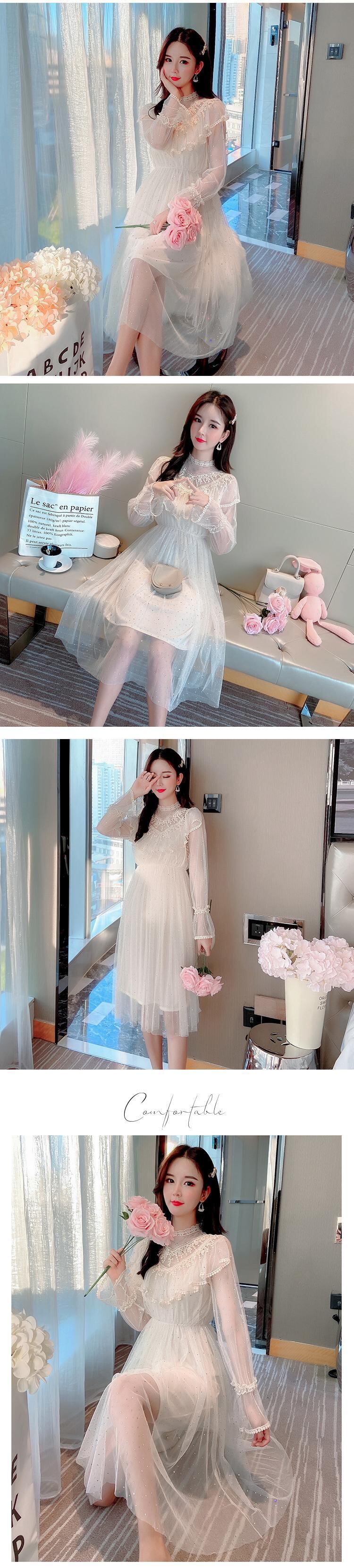 女性レースフリルドレス春夏パーティーウエストビーズテルチュチュミディスリムフェアリードレスVestidos ラッフル スプリング 春物 サマー 夏物 パニエ ペチコート