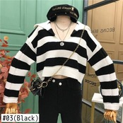 秋レトロストライプニットレディースプルオーバールーズ長袖セーターVネッククロップトップセーターレディース ロング オータム 秋物