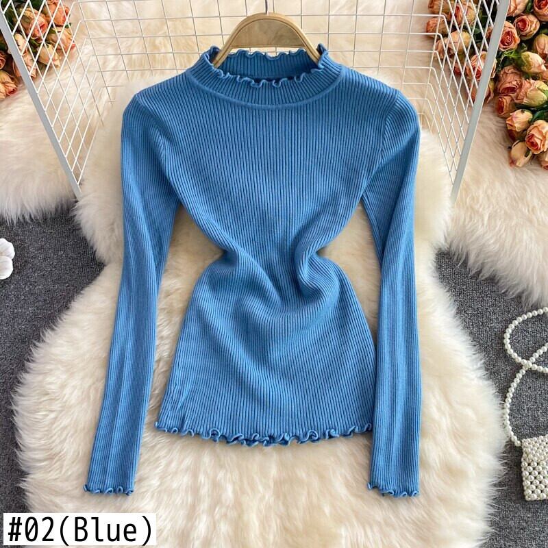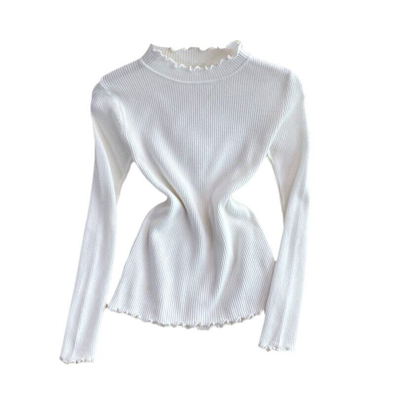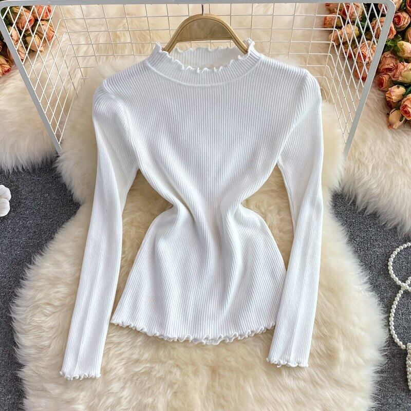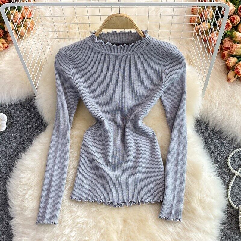 女性ニットセーター長袖Oネックソリッドエラスティックスリムベーシックトップス2021秋のストリートウェアプルオーバー ロング 伸縮 オータム 秋物 ソリッドカラー