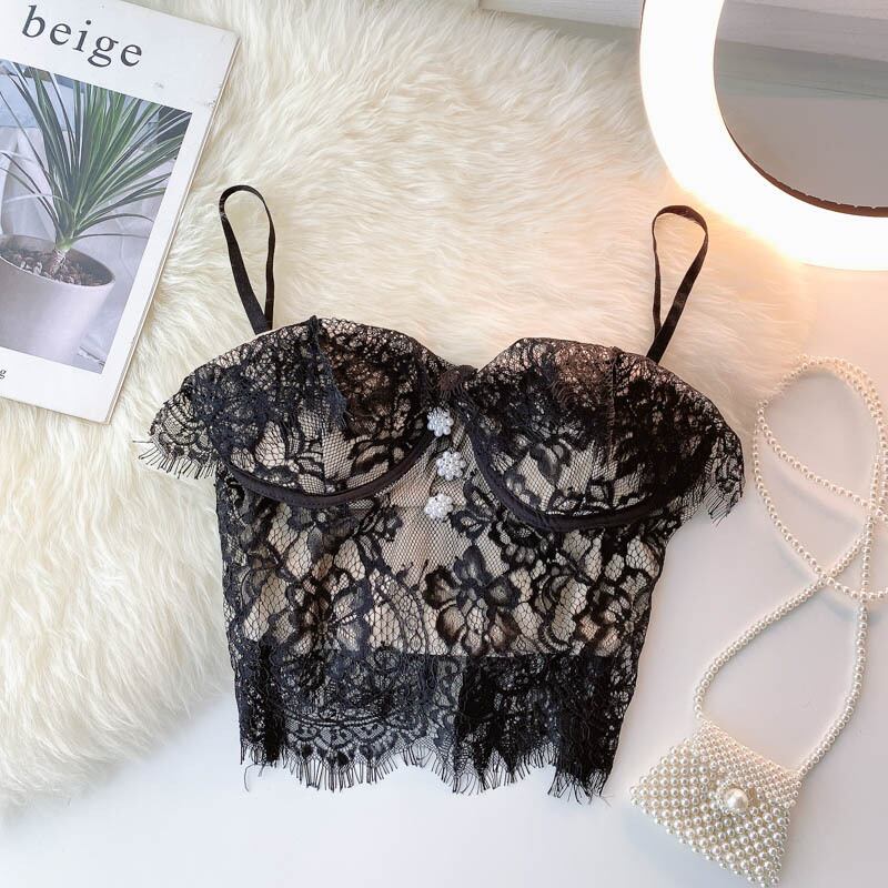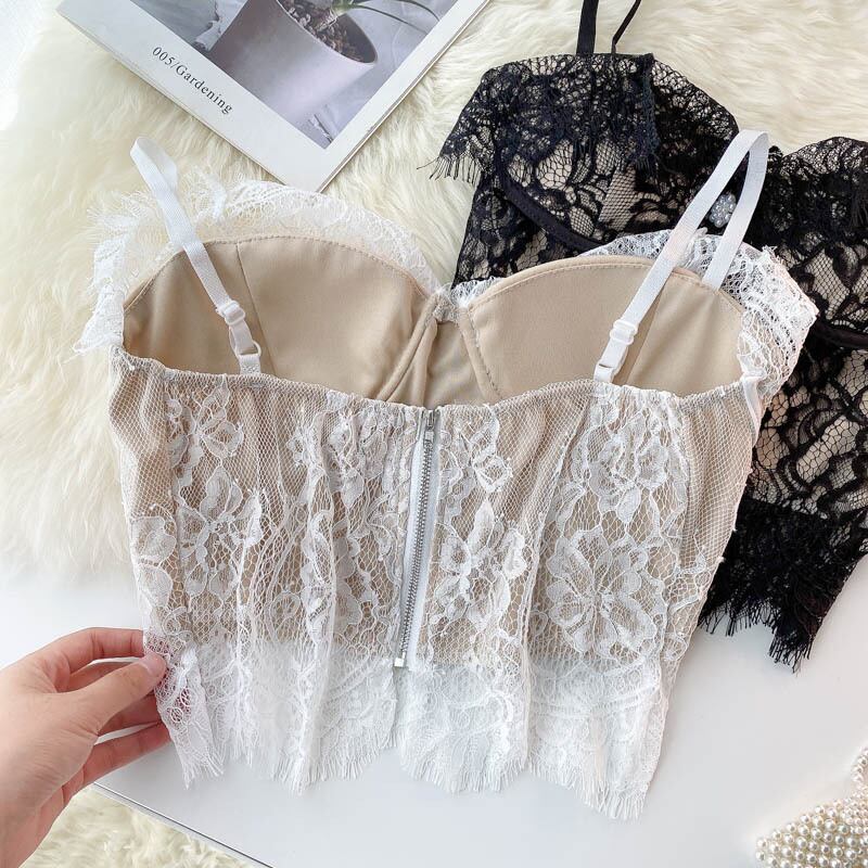 女性の甘いレースストラップトップスセクシーなノースリーブバックレスVネックスリムY2Kトップスサマーフレンチオフショルダーショートキャミソール 大人ガーリー スウィート キュート カジュアル 夏物