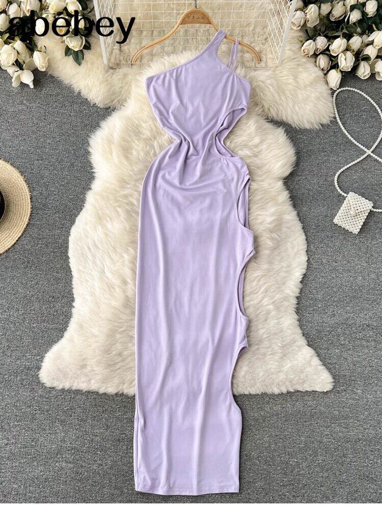2022年夏のワンショルダーセクシードレスノースリーブビーチサンドレスフレンチストリートウェアボディソリッドスリムマキシロングドレス サマー 夏物 ソリッドカラー Abe40667133070
