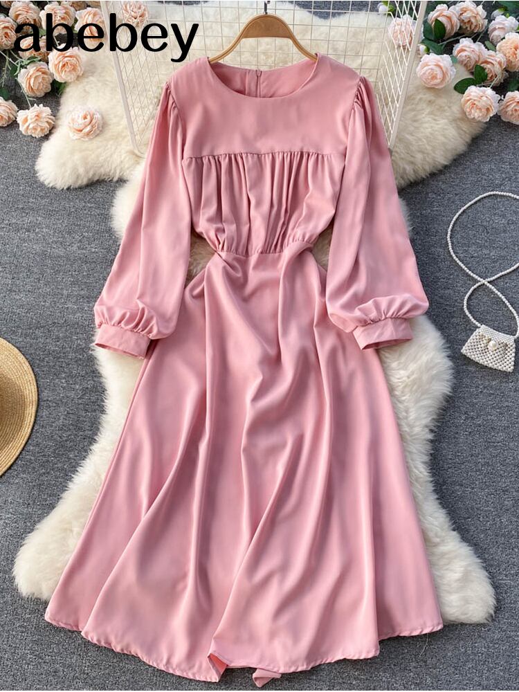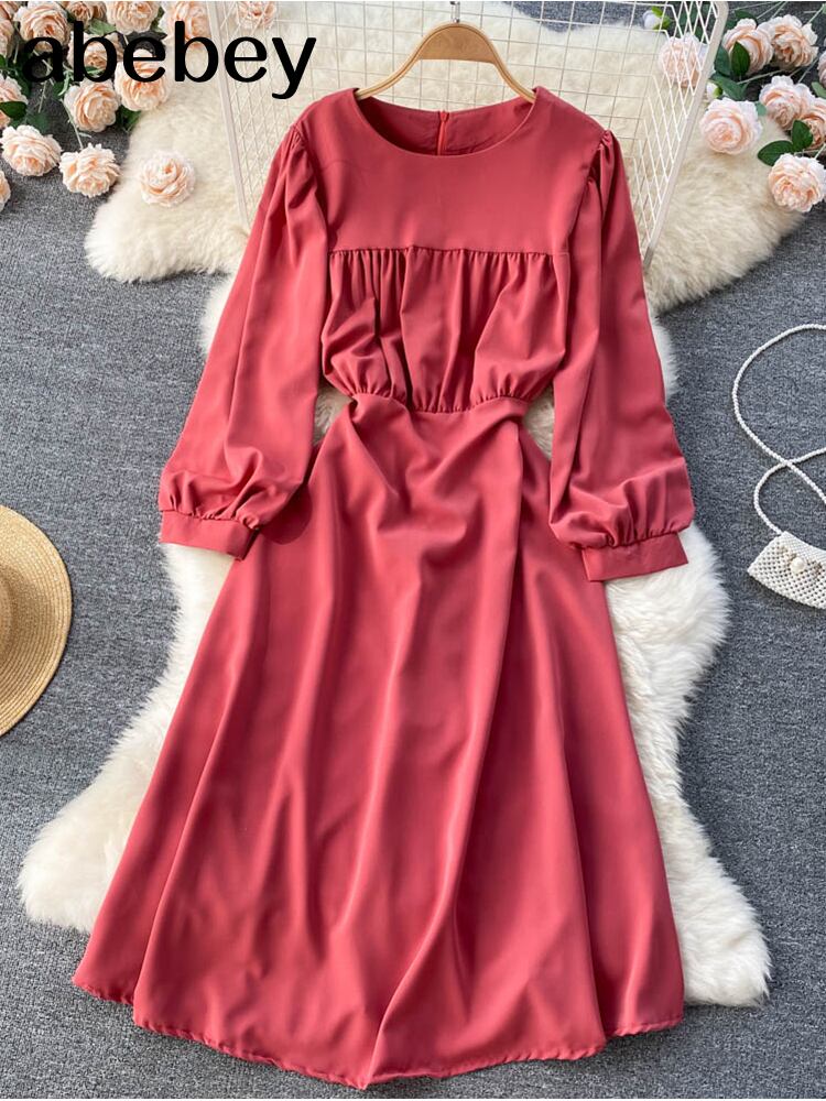 ヴィンテージシャーリングドレス女性Oネック長袖ウエストマキシロングドレス2022 ビンテージ Abe75908152678