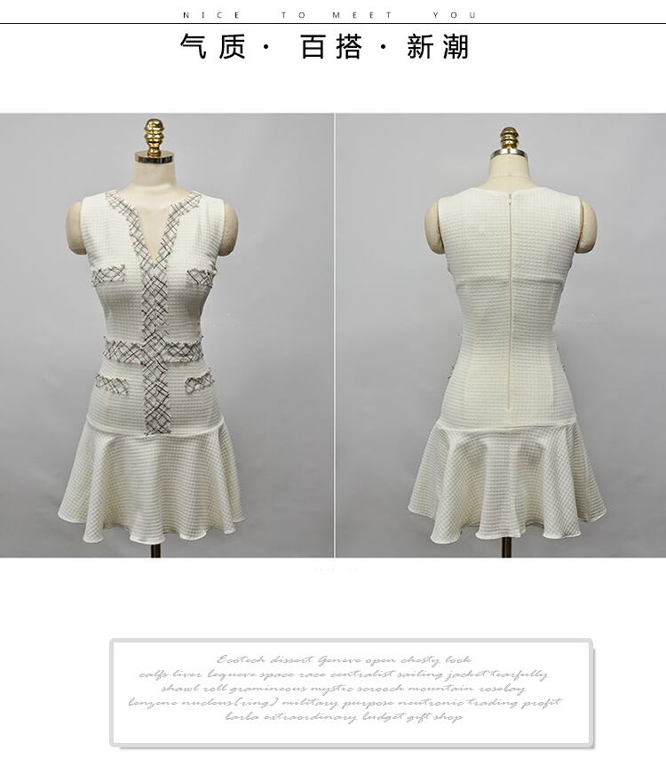 夏のレトロなミニドレスストリートウェアスリーブルVネックウエストダブルレイヤーショートドレス サマー 夏物 Rhc77982712115