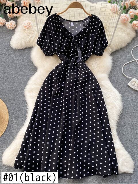 半袖水玉サマードレス女性VネックセクシースプリットAラインマキシパーティードレスVestidosボヘミアンビーチロングドレス ショート ハーフスリーブ 夏物 Abe7428186917