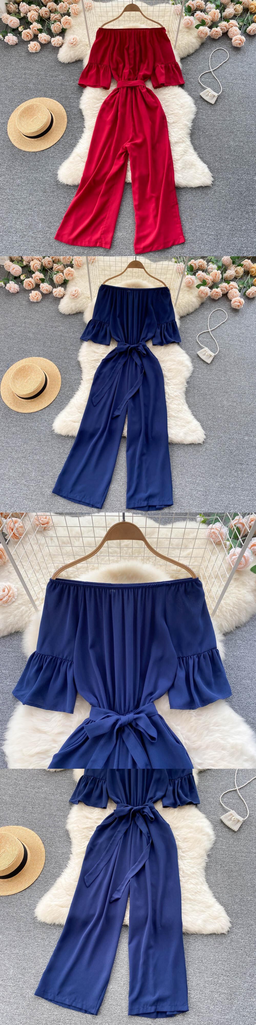 サマージャンプスーツレディースソリッドスラッシュネック半袖ロンパースElastickワイドレッグオーバーオール2022 ショート ハーフスリーブ エラスティック 伸縮 夏物 ワイドパンツ ソリッドカラー Abe4128322985
