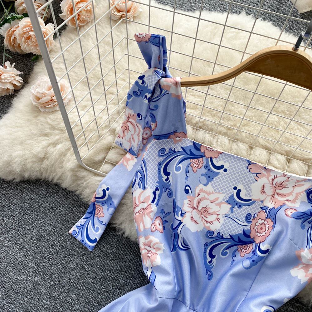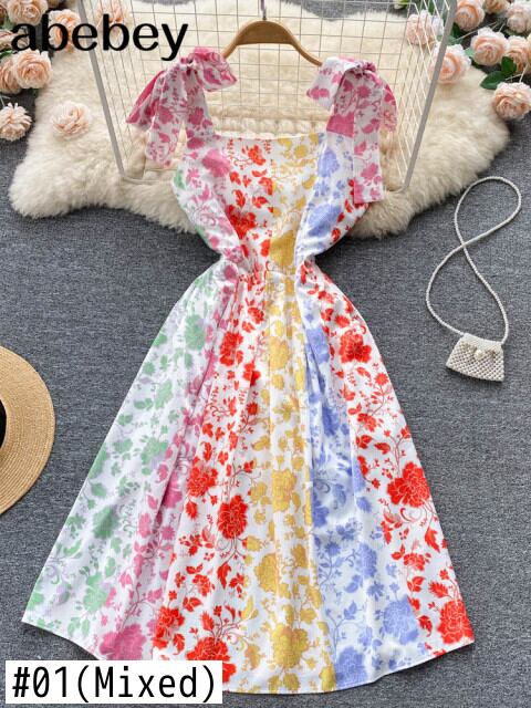 2022フローラルプリントCottagecoreノースリーブストラップミディドレスパーティークラブセクシーな背中の開いたドレス女性Vestidos 花柄 Abe22261530226