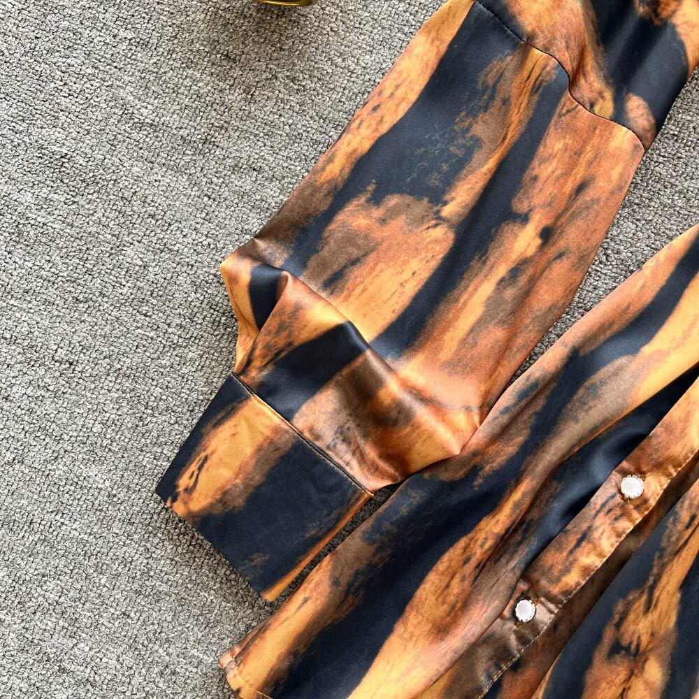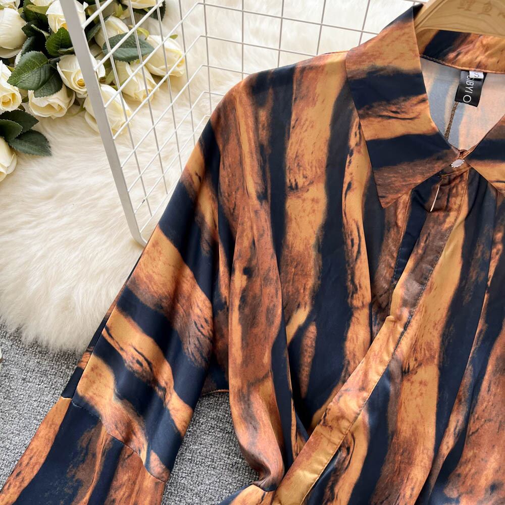 ヒョウ柄のドレープブラウスの女性が長袖トップスを断るスリムなパーティーシャツ2022 ロング Abe23431713902