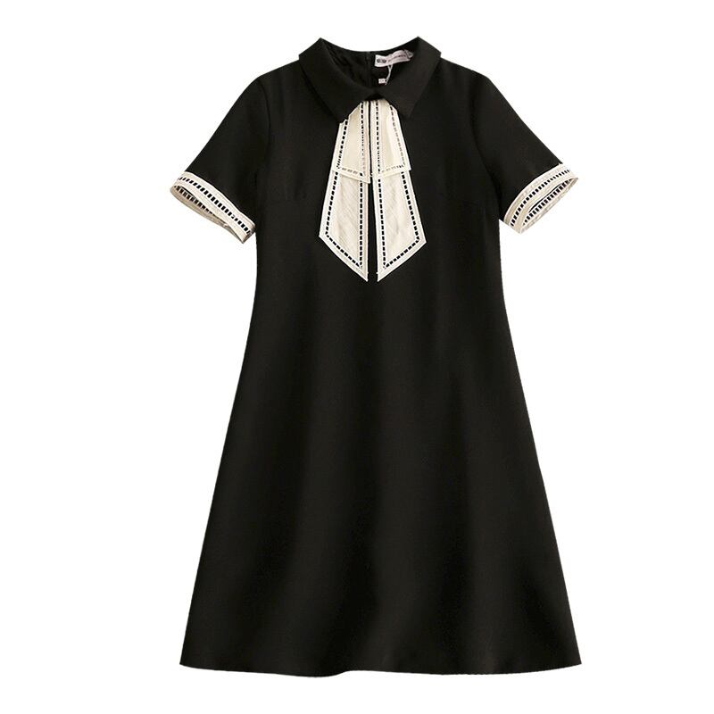 2022年夏の女性の弓ピーターパンの襟黒のミニドレススリムなパーティードレスVestidos ブラック リボン サマー 夏物 Rhc90169566181