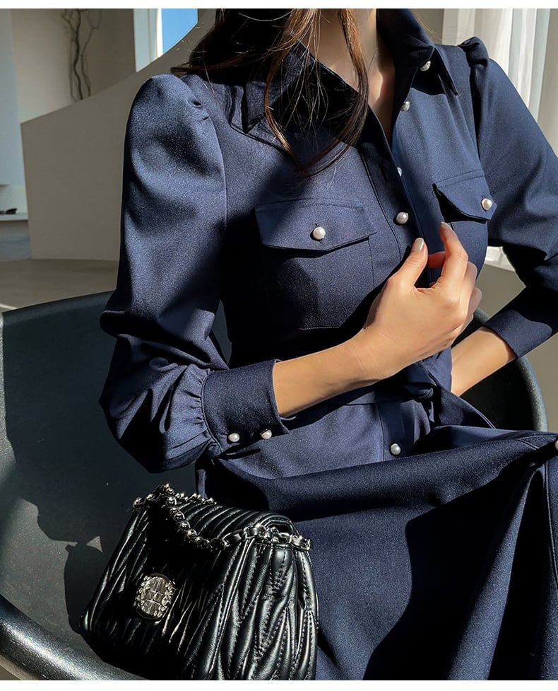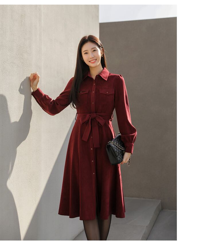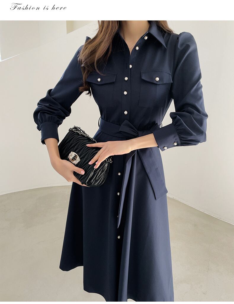 2022年秋のフレンチスタイルの女性ソリッドAラインフルレングススリーブフリルドレスレディヴィンテージボタンサッシドレス ラッフル オータム 秋物 ソリッドカラー ビンテージ Rhc59069577119
