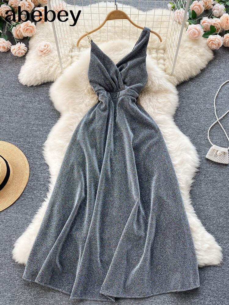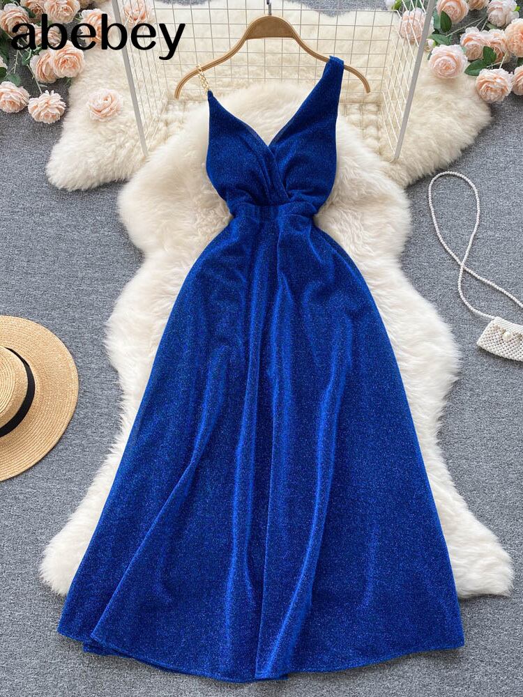 夏の女性のロングドレス2022ナイトパーティークラブチェーンバケーションバックレスセクシースリムAラインドレス サマー 夏物 Abe64167224429