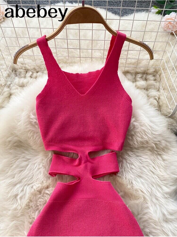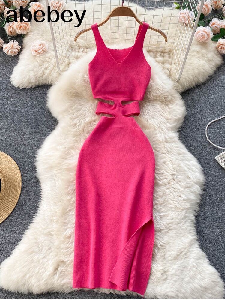 2022女性鉛筆ドレスタンクスリーブVネックボディコンセクシーなVestidosKpopヴィンテージOL弾性ニットサマーミディドレス エラスティック 伸縮 夏物 ビンテージ Abe28477788452