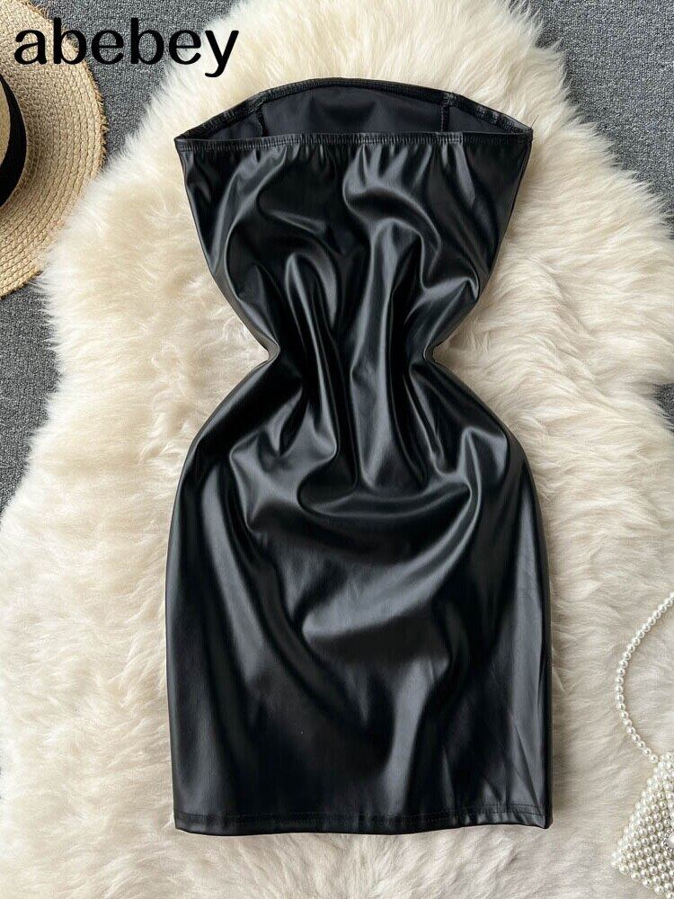 女性夏のセクシーなパーティーストラップレスボディコンPuレザースリムパッケージヒップブラックミニドレスサンドレス2022 サマー 夏物 Abe50771349170