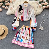 バケーションフローラルプリントセット女性2022年夏サッシュランタンスリーブシングルブレストスリム+ショートスカートツーピースセット サマー 夏物 花柄 Abe27683262185