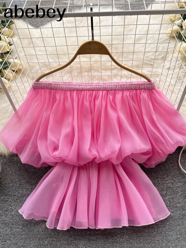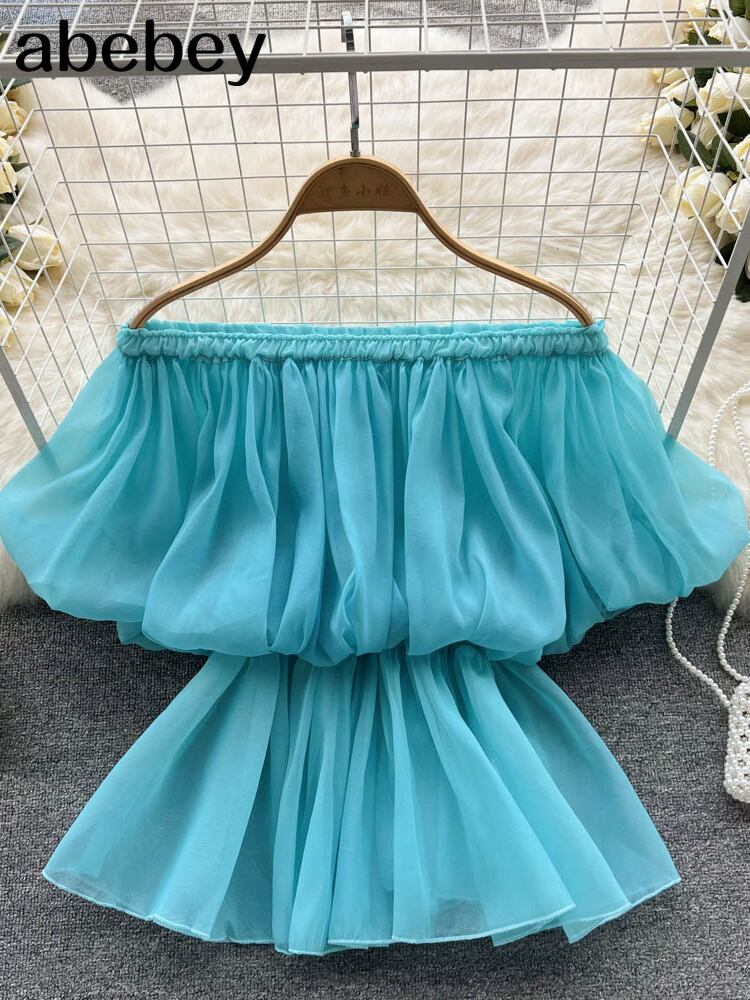 女性ブラウスフリル半袖スラッシュネックスリムトップ秋シックセクシーオフショルダーショートブラウス ハーフスリーブ ラッフル オータム 秋物 Abe34957330369