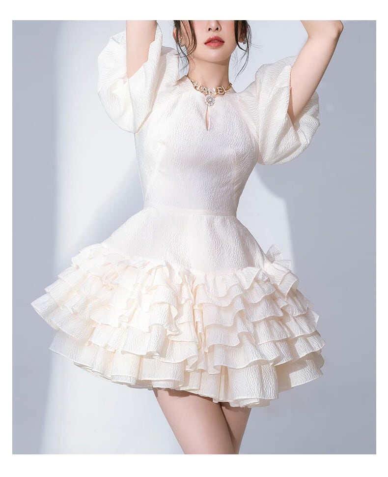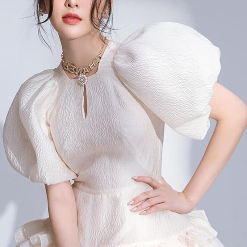 2022年夏のビーディングシフォン女性ドレス滑走路ランタンスリーブスリムフリル夜会服パーティードレス ラッフル サマー 夏物 Rhc47195944650
