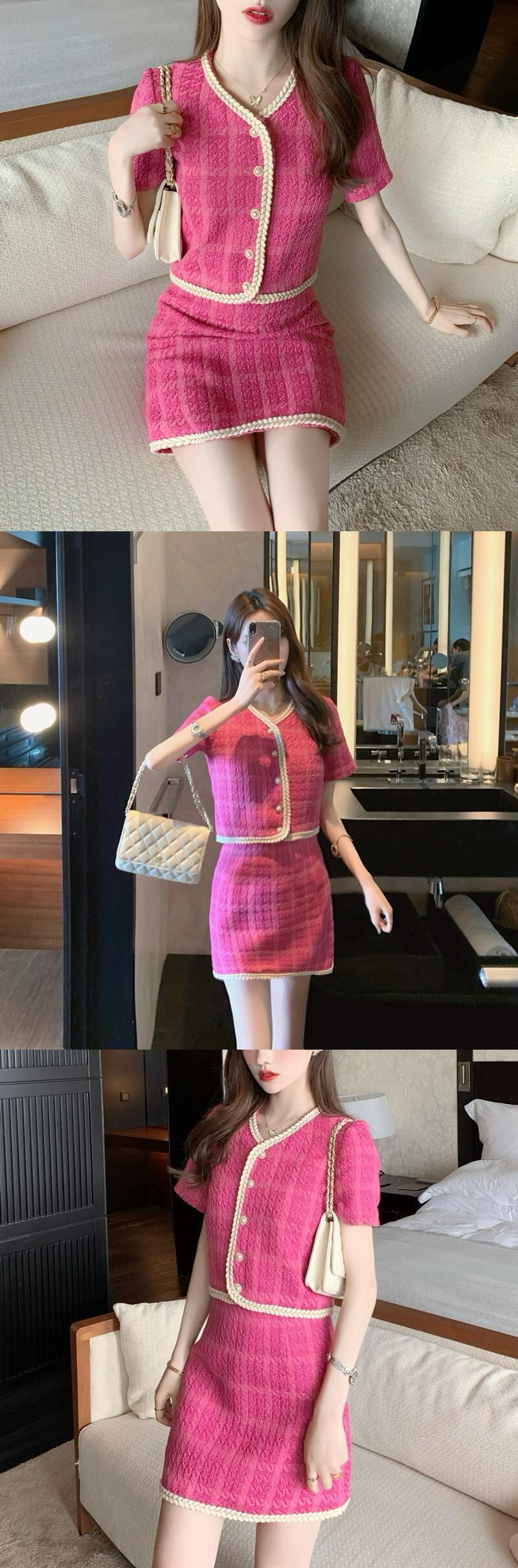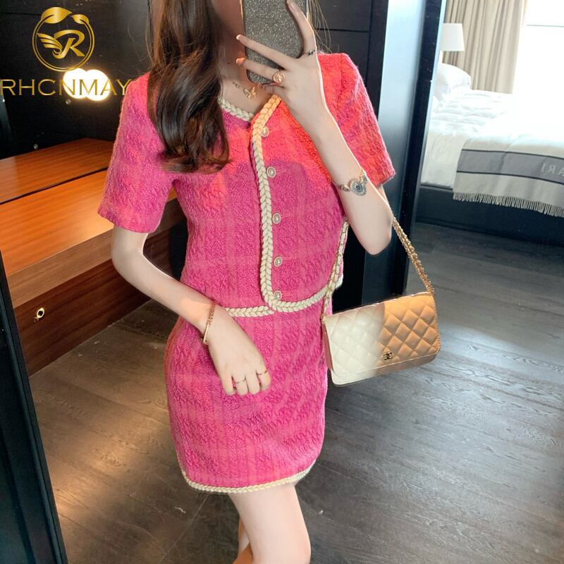 ツイードイングランドスタイル2点セット女性チェック柄ジャケット&ミニスカートシングルブレストショートトップミニスカート織りトリム2点セット ヨーロピアン Rhc46154522618