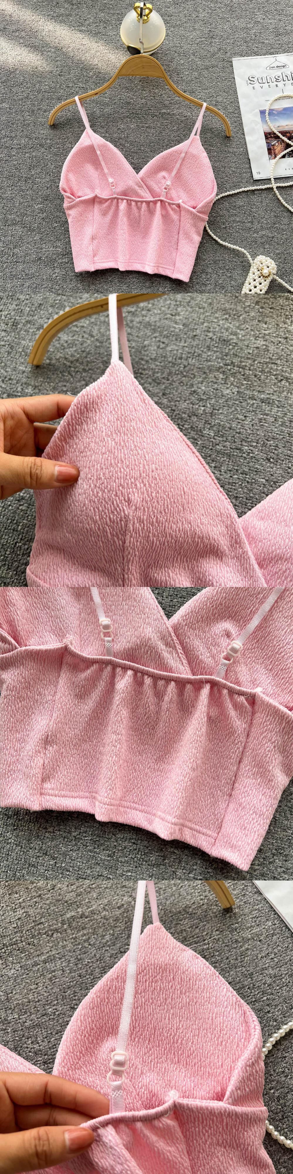 セクシーなサテンクロップトップ女性ワイヤレスブラレットかぎ針編みトップスパゲッティストラップTシャツ胸にクロップドキャミソールキャミソール Abe61351478933