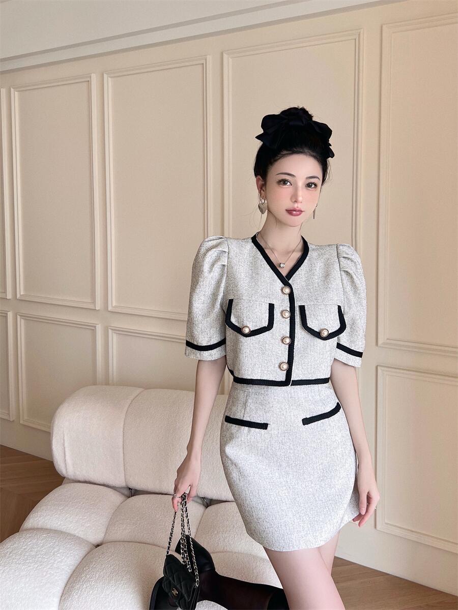 2022年夏のシックなスウィートツーピースセット女性クロップトップシャツブラウス+ミニスカートスーツスリム年齢短縮2ピースセット 大人ガーリー キュート カジュアル サマー 夏物 Rhc97323632123