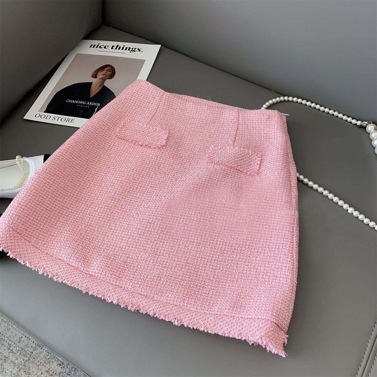 女性ツーピースセットツイードスウィートエレガンス半袖ターンダウンカラーボタントップス+ウエストミニAラインスカート衣装 ショート ハーフスリーブ 大人ガーリー キュート カジュアル Rhc45957375595