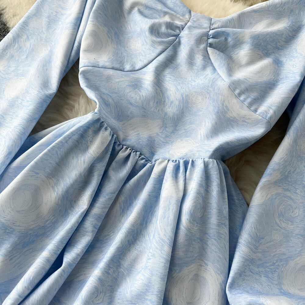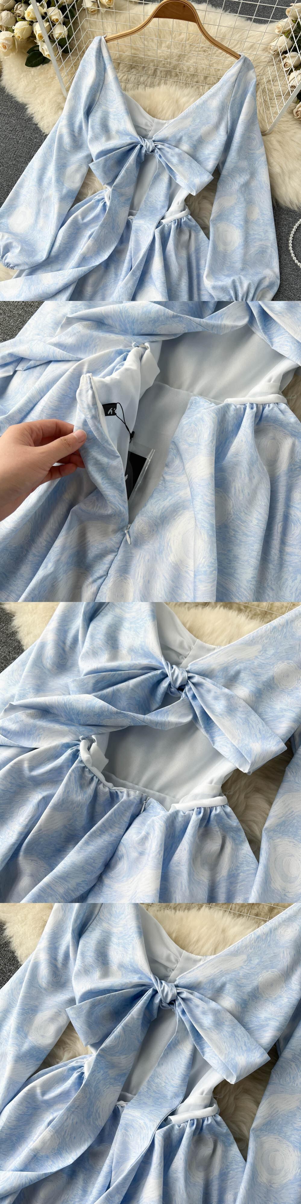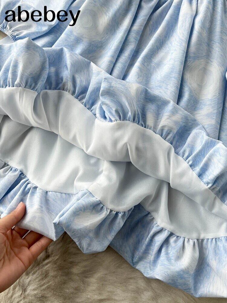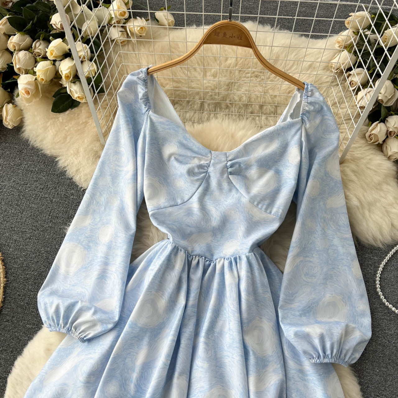 2022スクエアネックローカットドレス女性パフ長袖フレンチスタイルスリム女性ロマンティックビーチドレスサンドレスローブ ロング スクウェア Abe16345752006