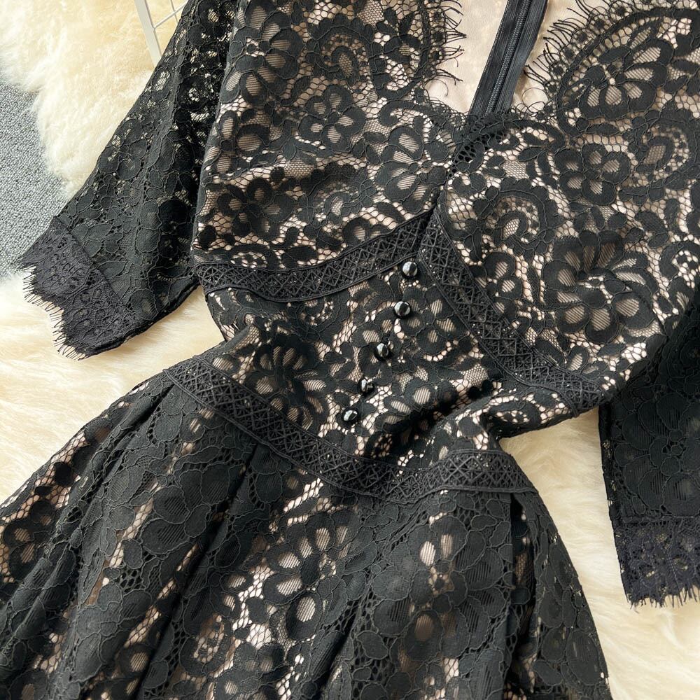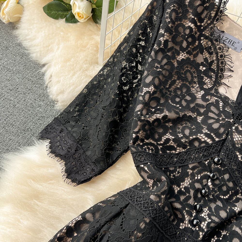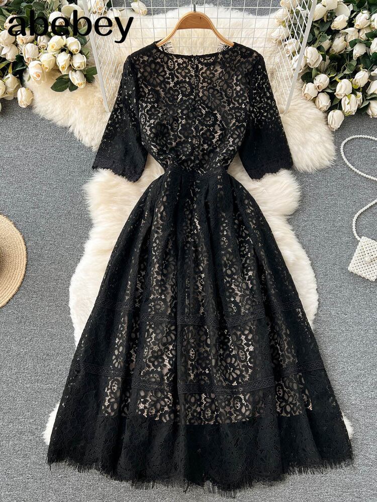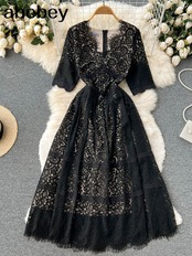 レーススタイルロングドレス夏の女性2022メック半袖VネックジッパーシャーリングスリムAラインビーチドレスサンドレス ショート ハーフスリーブ サマー 夏物 Abe63126236637