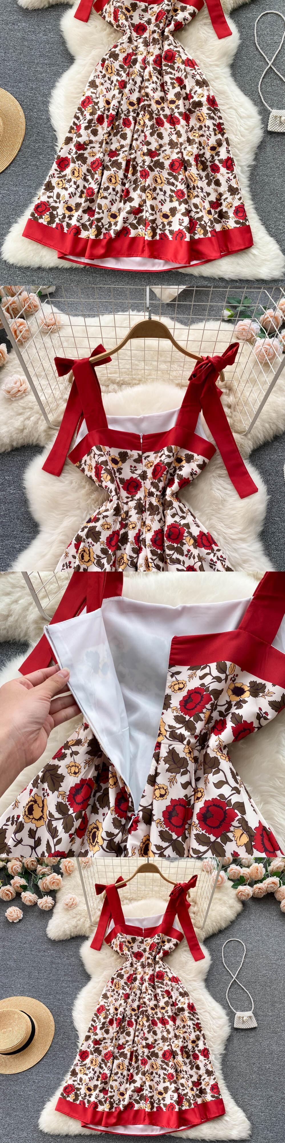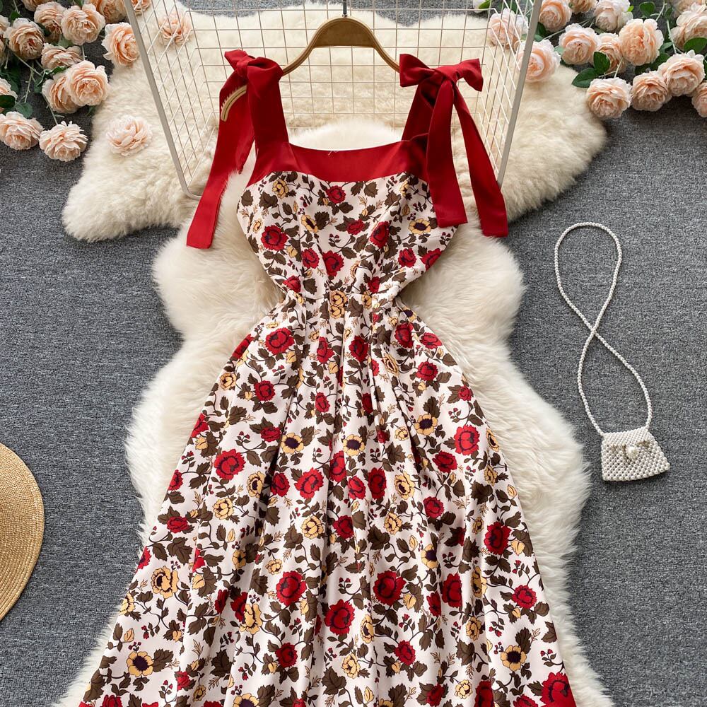 花柄Cottagecoreノースリーブストラップミディドレスパーティークラブセクシーな背中の開いた2022ドレス女性Vestidos Abe92319946187