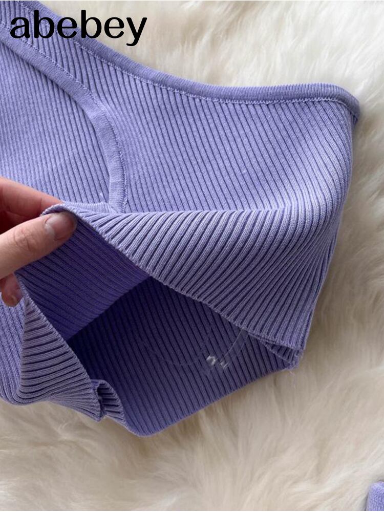 2022パープルサマーウィメンズソリッド2ピースワンショルダークロップトップタンクスリットミドル丈スカートセットボディコンセクシーパーティー衣装 夏物 ソリッドカラー Abe93522830430