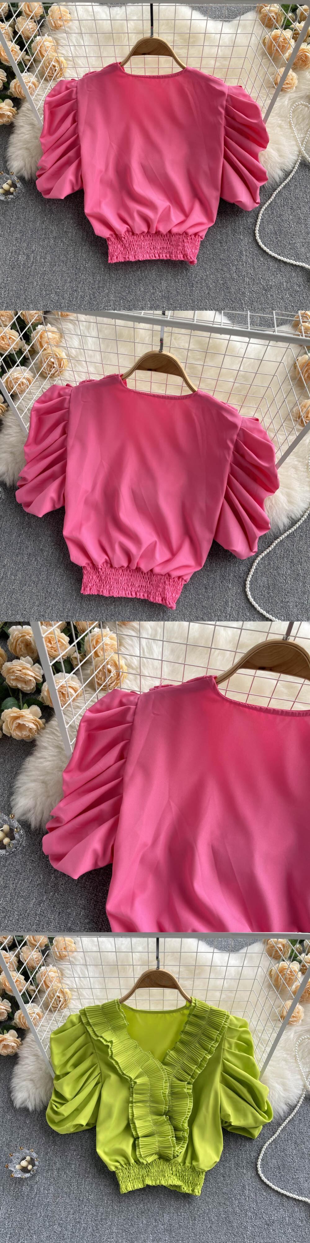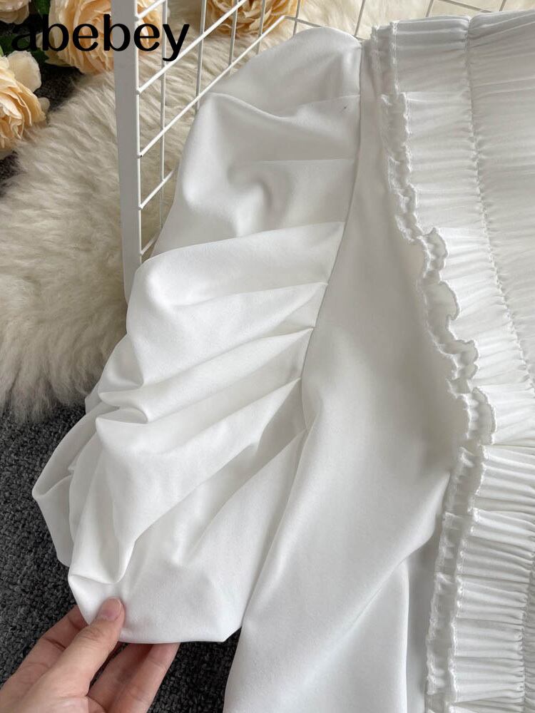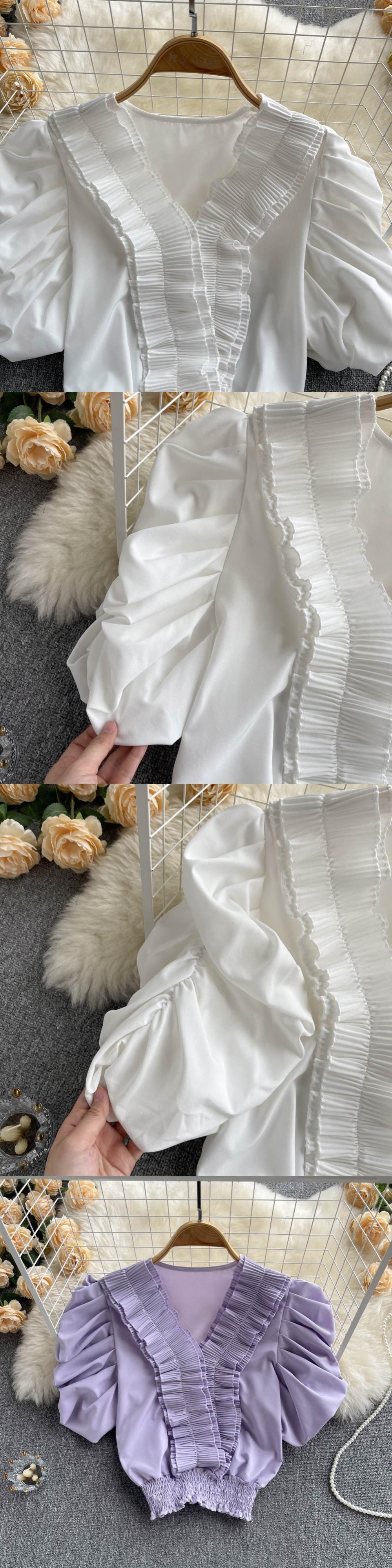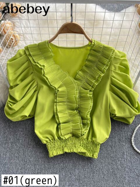 2022年夏のセクシーなVネックの女性のブラウスセクシーなフリルレースアップ半袖白いクロップトップの女性の包帯ショート ホワイト ハーフスリーブ サマー 夏物 Abe7932419275