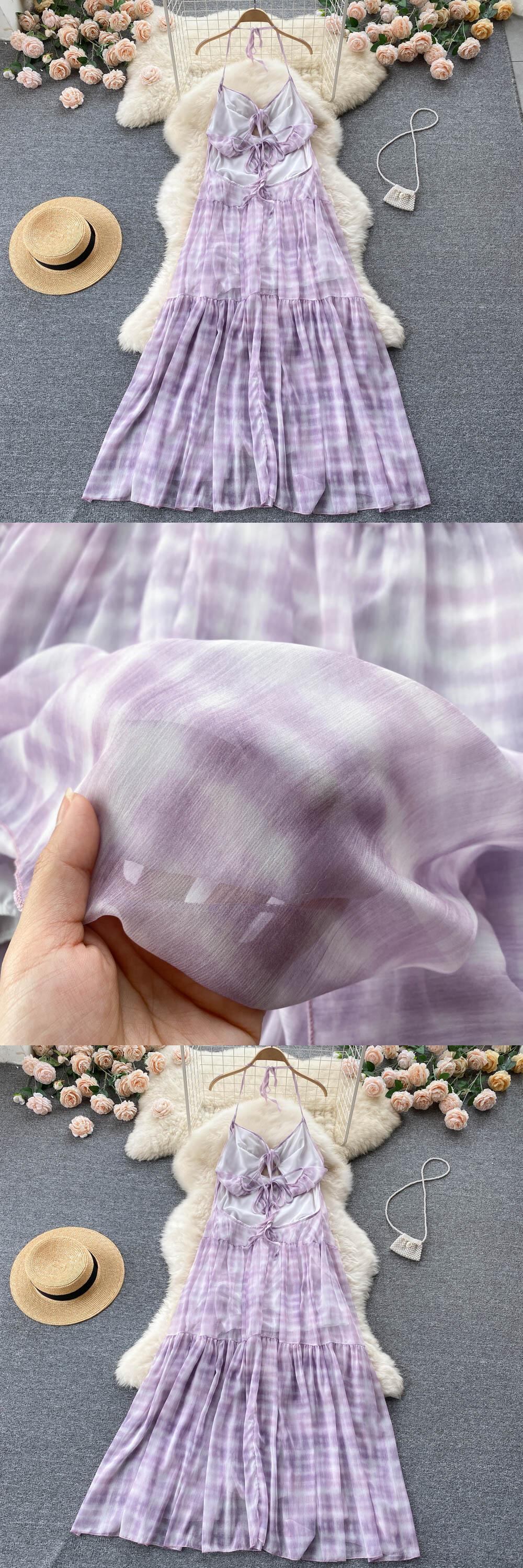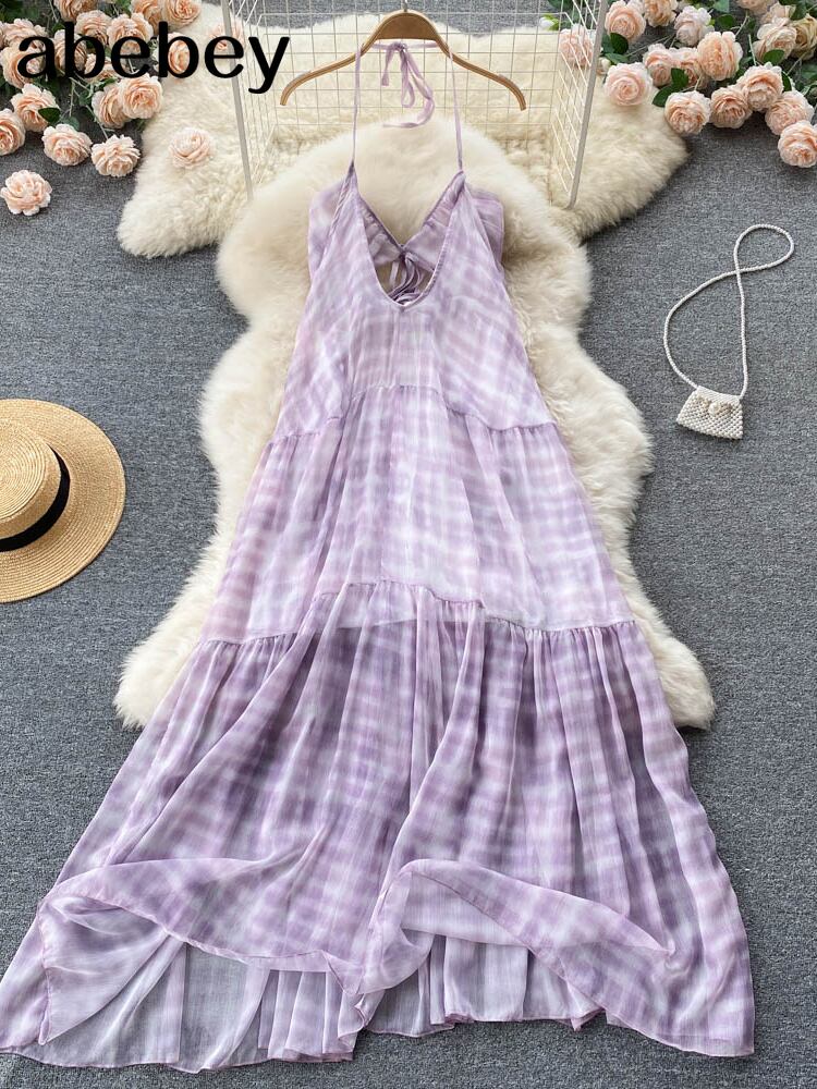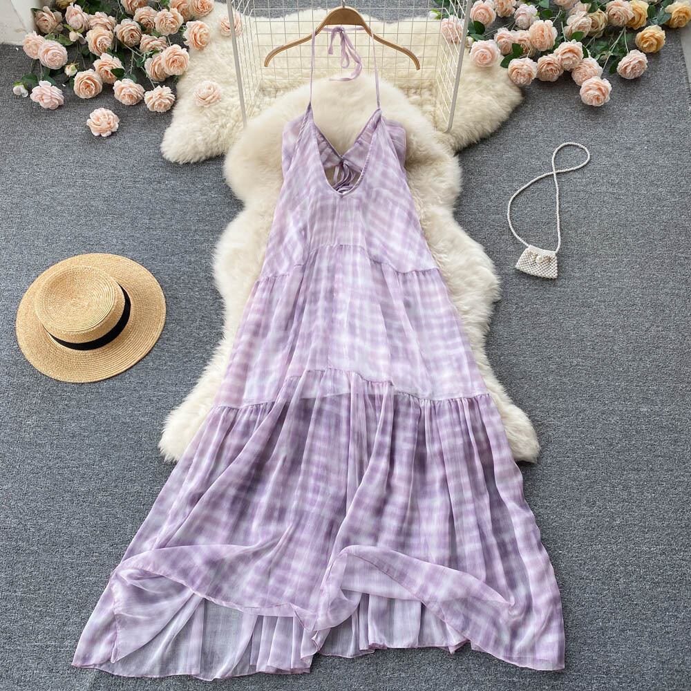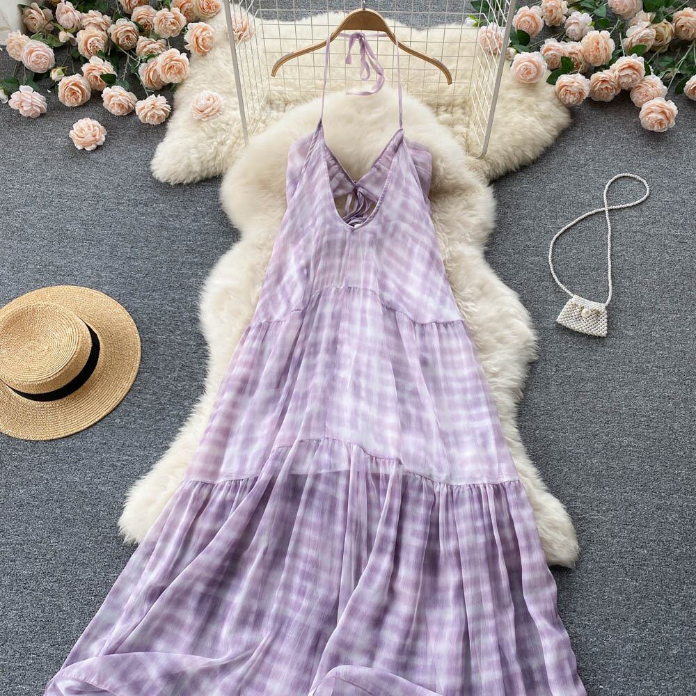 フレンチスタイルパーティーロングドレス夏の女性2022レースアップクロススリングスリムセクシーなAラインドレス サマー 夏物 Abe44508540454